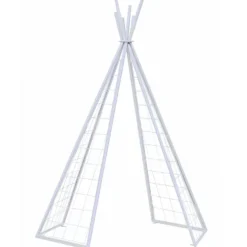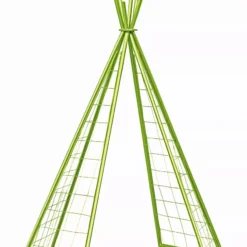 A fun, modern take on the classic garden tipi by Terra Trellis. Designed and hand-crafted in the U.S. from steel and finished in brilliant water-resistant powder-coated colors or a natural oxide patina. Allows edible or ornamental plants to weave throughout, creating a spectacular natural tapestry while providing sturdy support in garden or on the patio. Doubles as a work of modern art when plants are dormant. Knocks down into three parts for easy transport/storage. Base can be bolted to hardscape or staked into ground.