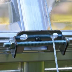 This Anchoring Kit adds extra protection against strong wind gusts, up to 62 mph. It is cleverly designed to fit your existing Palram –Canopia Greenhouse such as the Harmony, Nature, Mythos, Hybrid, Balance or Octave, and can be secured to the foundation of your choosing. This rugged and easy-to-use system gives you a series of steel cables with the necessary anchors and fasteners to keep your greenhouse snug and safe, right where you need it. If you live in an area with high winds or generally unstable weather, this simple system is a must-have. The cables simply go over the greenhouse, secured to the structure with a series of clamps, then secured to the ground with large stakes.
