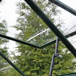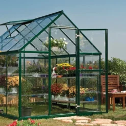 Perfectly sized for the beginner gardener or someone who needs a small growing area space, this compact greenhouse is attractive, functional and sturdy. Crystal-clear panels let in 90% of sunlight and are 100% UV protected so they won’t yellow. Start your own vegetables and annual flowers from seed, harden off indoor-grown plants, propagate perennial cuttings and nurture tropical plants even as the weather chills. Long-lasting galvanized steel base and aluminum frame, with a magnetic swinging door that locks. A vent on top allows you to increase air circulation and let excess heat out. Gutters channel water where you want it and make it easy to collect rainwater, too.