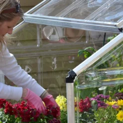 - Virtually unbreakable polycarbonate panels protect plants from inclement weather conditions and block harmful UV rays