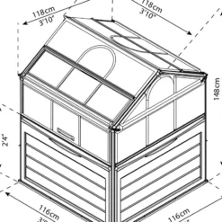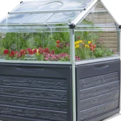 The Plant Inn™ Clear is a mini polycarbonate greenhouse, great for year–round vegetable and herb growing in small spaces. This durable compact greenhouse features an aluminum frame, virtually unbreakable polycarbonate panels, a built–in storage compartment for tools and supplies, and a raised garden bed which is 28.3 in. above the ground and makes gardening accessible to everyone. The peak is 58.3-inches high and has two lids for easy access as well as for temperature and humidity control. The Plant Inn is a complete all in one solution.