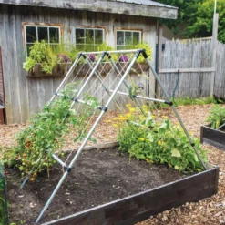 Follow our design plans with suggested pipe lengths for this A-Frame, or create your own unique structures. Build it tall enough so plants grow unhindered and you can tend underneath with ease. Add netting or twine for squash, cucumbers, peas and more. Note: Kit includes connectors only, conduit pipe not included.