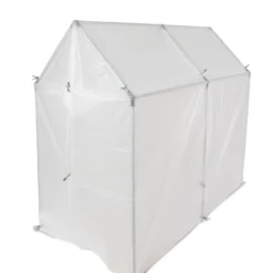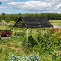We provide instructions and connectors, you provide 3/4″ EMT (electric metal tube) available at hardware stores and is affordable. Create the frame size for garden covers that will cover your space. Build it and leave it in for years or pick it up and move it to another space. Materials are long lasting. Kit includes: 3 – roof peak angle connectors, 6 – angled side to roof connectors, 2 diagonal brace connectors.