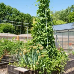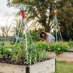 This unique connector is ready for you to insert either your four sections of conduit or bamboo poles, tighten the screws, and install your brand new, custom teepee trellis into the garden. A welded circle at the base of the connector allows you to tie on garden twine and increase the climbing area for plants. Designed for a lifetime of use, it’s hefty, heavy-gauge, powder-coated steel. Use with pipe/bamboo from 3/4″ to 1″ in diameter.