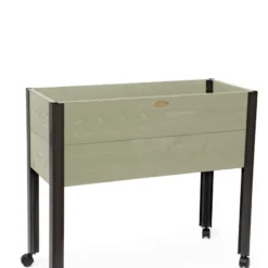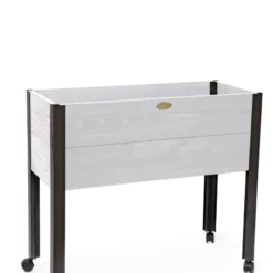 Grow an abundance of food and flowers in a compact space. This lovely planter box is made of rot-resistant wood, coated with eco-friendly, food-safe PolyWhey® stain. It features our signature lifetime aluminum legs, and casters make it easy to roll around on your deck or patio. With a 10.5″ planting depth, this garden box is perfect for herbs, veggies, edible flowers, or an entire salsa garden. No-bend gardening is easier on your back and knees, and you’ll have fewer weeds to deal with too!