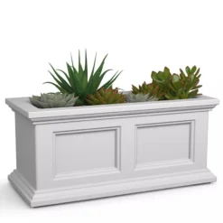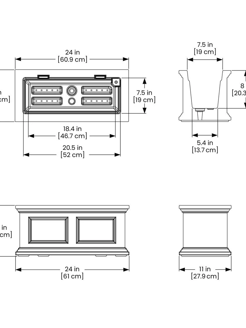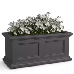 The Fairfield Self-Watering Window Box is the best of both worlds, combining the classic look of custom-crafted wood with the weatherproof durability and easy maintenance of UV-protected polyethylene. Mounted to the wall just below your window, the planter is a perfect spot to add pops of floral color, easily enjoyed inside and out. When the plants fill in a bit more, they’ll create the added benefit of some extra privacy from passersby. A built-in self-watering reservoir ensures even, consistent moisture, keeping your plants happy and hydrated. Two helpful overflow holes prevent the planter from becoming water-logged. A handy fill tube is conveniently located in one corner of the planter, with a plug to prevent evaporation.