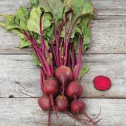 - Detroit Dark Red Beet: 3″ round roots are great for canning, juicing and roasting — plus the greens are delicious in salads and sautes too!