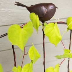 Support a variety of flowering vines with this fun trellis! Plant Josephine clematis, nasturtium, abutilon, sweet peas, or tidal wave petunias and three little birds will watch over them diligently.