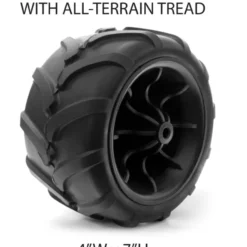 - Wide, steerable wheels roll easily over grass, gravel and other rough terrain