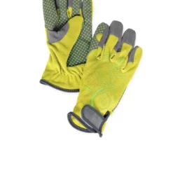 Lightweight, breathable knit fabric gloves feature PVC dots on palms and fingers to give you a good grip on stubborn weeds. The synthetic leather also reinforces high-abrasion areas for durability and longevity. Fit is close without affecting dexterity. Elasticized cuff keeps debris out.