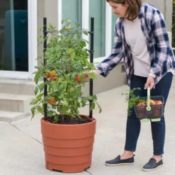 Though it’s designed to produce exceptional tomatoes, this planter is also a stellar choice for other veggies — like cucumber, peppers, and eggplant. First, it’s really big, so your plant will have plenty of room all season long. The vented sides and inner liner promote air pruning for the strongest root system possible. An innovative 3-way, self-watering system ensures consistent, optimal hydration — especially in summer when it can be hard to keep up with your garden’s needs! And sturdy aluminum poles with adjustable rings won’t buckle under growing branches and heavy, ripening fruit. Plus we’ve designed the rings to open up so you can gather in wayward stems without breakage!