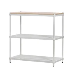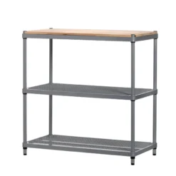 Traditional wire shelves can cause a headache as items can fall through the wide gaps on the shelves. Our brilliantly engineered mesh shelving units use a larger gauge of expanded metal mesh for style, strength and functionality. Each shelf has a weight limit of 440 pounds to safely hold everything from small knick knacks to large, heavy bins. This 3-tier shelving unit with a rubber wood top is sized perfectly for smaller workspaces.