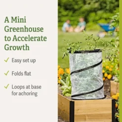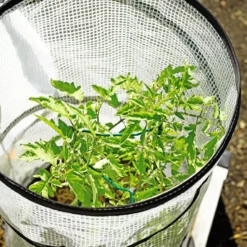 Mini-growhouse protects tomato transplants from cold temperatures and chilly winds, so you can set plants out in the garden weeks earlier. You’ll be amazed at how much faster plants grow — which means an earlier harvest of your first juicy fruits! Set it up in seconds: Release the toggles and it pops open, ready to place over plants. We made it extra large — 18″ in diameter and 28″ high — so you can leave it in place to protect plants longer. The top is made from mesh to allow warm air to escape, preventing overheating, and it also lets water in. When the weather warms up, you can unzip the top and leave it open for even better ventilation. Also good for peppers, eggplants and other heat-loving plants. Made from durable, reinforced greenhouse fabric. Flattens for easy off-season storage.