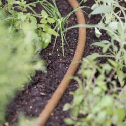 Free of toxins like phthalates, BPA and lead, these premium soaker hoses are a smart choice for any garden, especially organic and food gardens. They’re flexible so they’re easy to position and lay flat. They weep uniformly, providing the same slow, root-zone soaking to each plant. They save water, too: Soaker hoses use up to 80% less water than sprinklers! Neutral color is unobtrusive in gardens. 1/2″ inside diameter. Industrial spring guards at each end minimize annoying kinks and extra-long, crush-proof, chrome-plated solid brass fittings ensure leak-proof connections. Use included plastic end cap for a single run. Water pressure will affect flow in long-length runs.