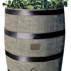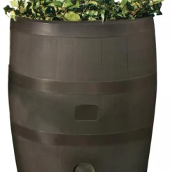Our authentic oak barrel texture is molded into each plastic rain barrel and will not fade, rot or risk insect infestation. The built in planter allows you to add a touch of nature and beauty to your rain barrel which is equipped with a durable spigot with hose hook-up as well as a screen to keep out debris and insects. Manufactured from rotomolded polyethylene, this rain barrel is impact resistant and UV stabilized to eliminate fading.