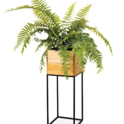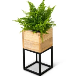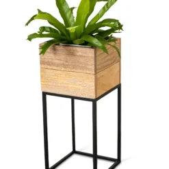 Sleek Mango Wood and Steel Planters Elevate Houseplants