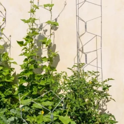 We designed a tower that’s worthy of being the center of attention! Its triangular footprint and spacious grid provide plenty of access points for training climbing vines and harvesting ripe fruits. Ideal for flowering or fruit-bearing climbers, like tall tomato varieties, beans, peas, clematis, morning glories, and more. Made of rustproof aluminum, like the rest of our Vertex family, it has a sleek, handsome design that will look as-good-as-new year after year.