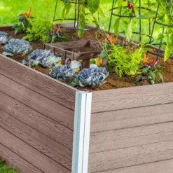 The Urbana Keyhole Composting Garden is crafted from a never before seen material that offers the natural look of wood, but with the lightweight durability of polymer. Dual aesthetic boards can be reversed to allow for either a natural wood grain look or brushed finish and are BPA/phthalate-free ensuring healthy, safe food production and a long product lifespan. Boards slide into posts easily and conveniently, with no need for tools or screws. The innovative posts make for perfectly modular garden beds, allowing you to design and configure your own unique layout and size. It’s smart, sustainable and beautifully designed.