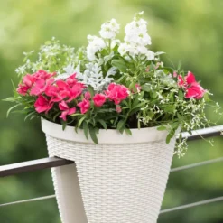 Easy-Care Faux Wicker Planter Slides Right Over Your Deck Railing