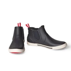 A sneaker-inspired rain boot, with a rubber sole and a pull tab for ease of getting them on and off. Comfy enough for your morning commute or for rainy weekend trips into town.